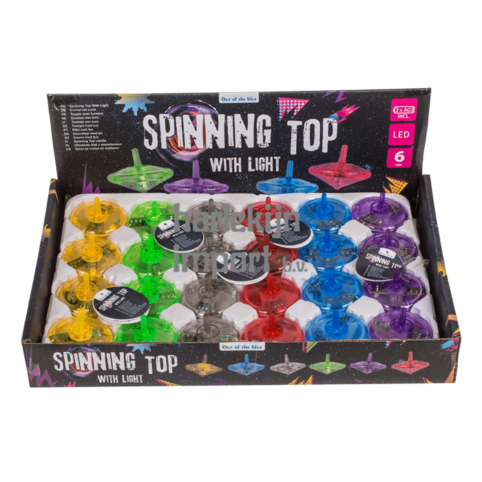 Dsp Gyro tol LED (inclusief batterijen) en aan en uitschakelaar, 6 kleuren. ca. 4,5 cm. 24 stuks in display. |