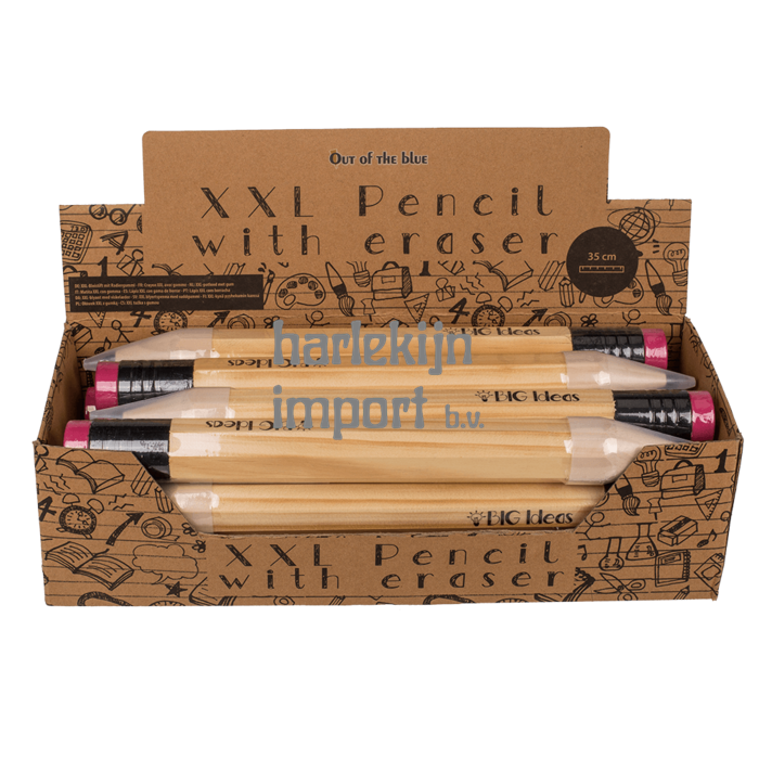 Dsp houten jumbo potlood met gum, 35 cm. 12 stuks in display.
