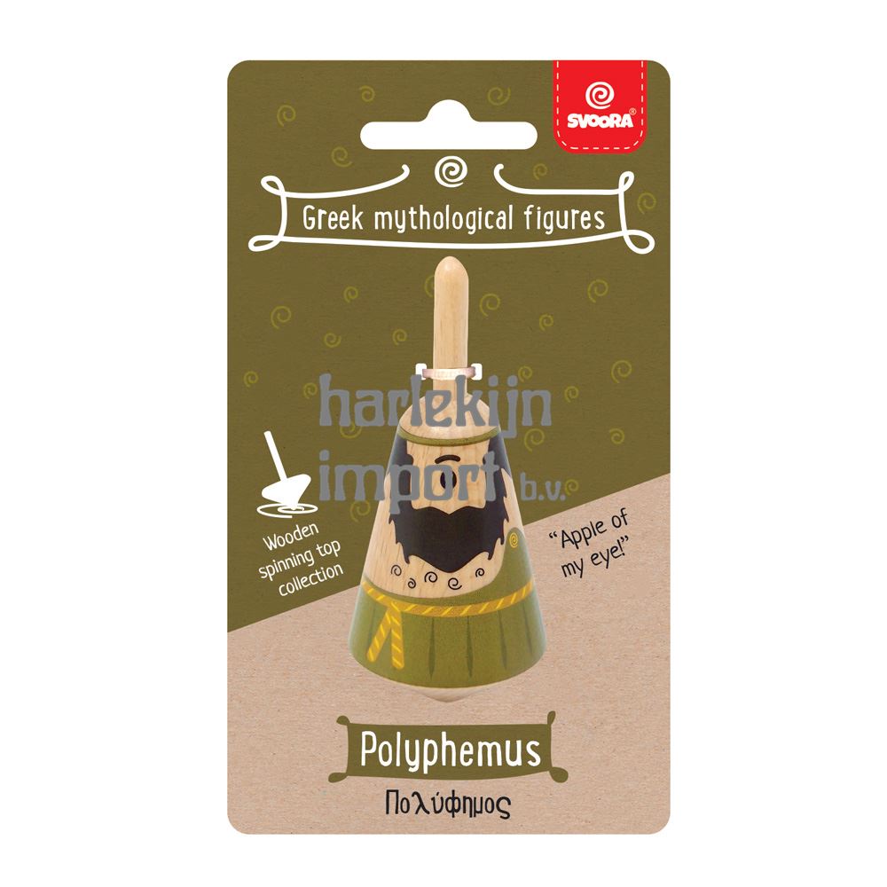 Griekse houten tol: Polyphemus. 3,5x3,5x8 cm. 5+ |