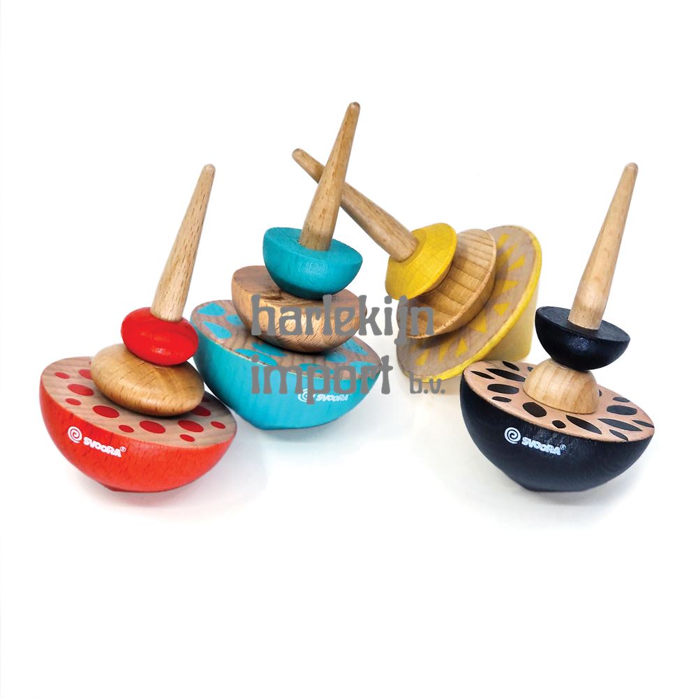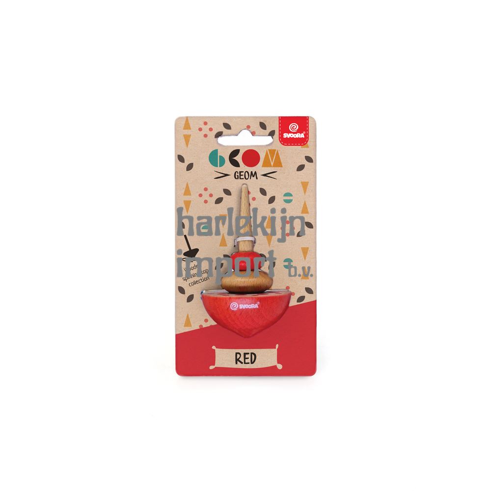 Houten tol geom rood. 8 x 5 x 15 cm. 5+ |