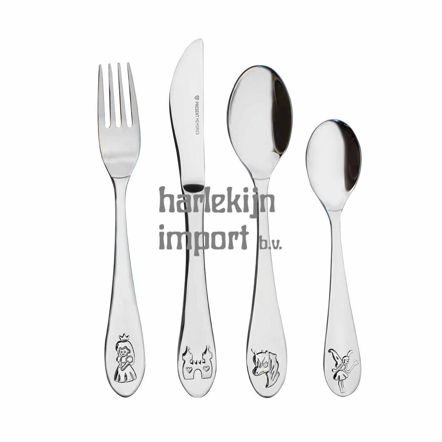 Het 4-delige Kindercouvert van het Nederlandse merk Present Memories is een tijdloos geschenk dat ideaal is om te geven als geboorte cadeau of doop cadeau.