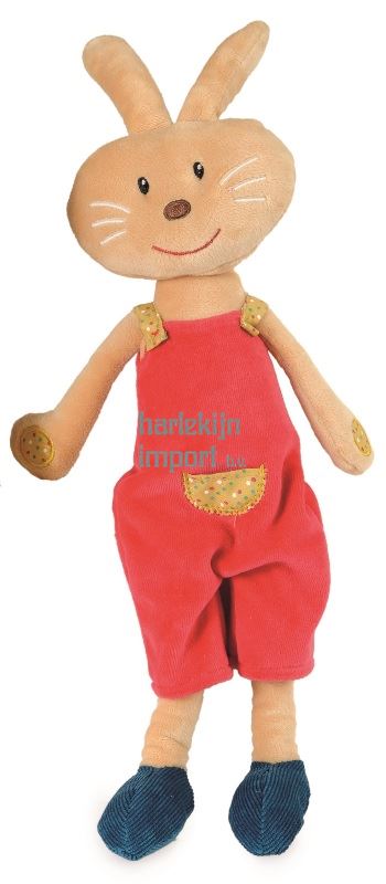 Hij heeft een heel zachte overall aan en bijpassende slippers.
