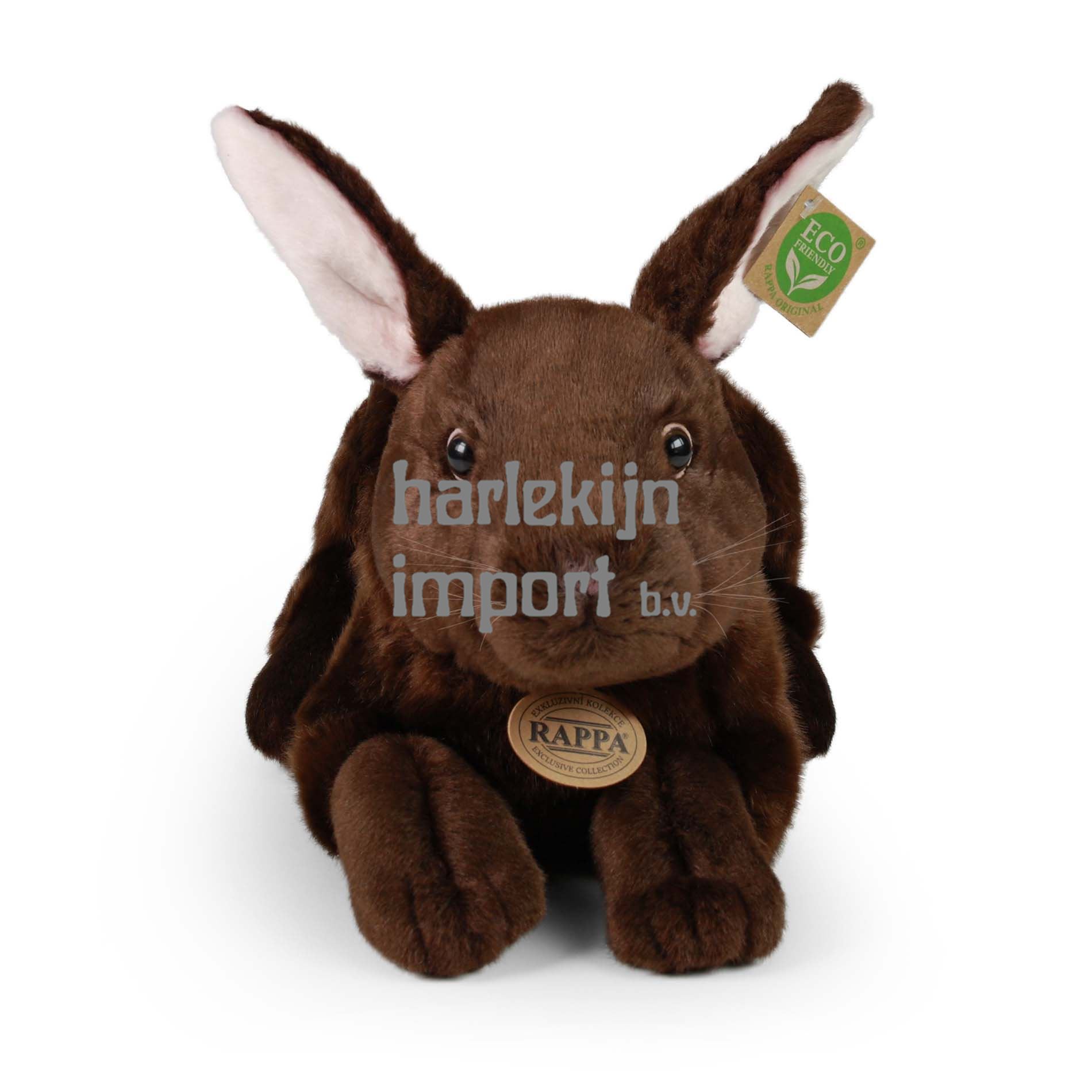 Een prachtig pluche konijn, afmeting 33 cm. Het konijn is gemaakt van hoogwaardig pluche en maakt deel uit van een exclusieve collectie pluche speelgoed RAPPA. Wat betekent ECO-FRIENDLY eigenlijk? De vulling van de knuffel is gemaakt van gerecyclede PET-flessen. Dit materiaal is volkomen veilig, niet te onderscheiden van de standaard vulling en volledig gecertificeerd voor de veiligheid van zelfs de allerkleinsten. We hebben besloten om de groene weg te gaan, zo milieuvriendelijk mogelijk - de ECO-VRIENDELIJKE manier.