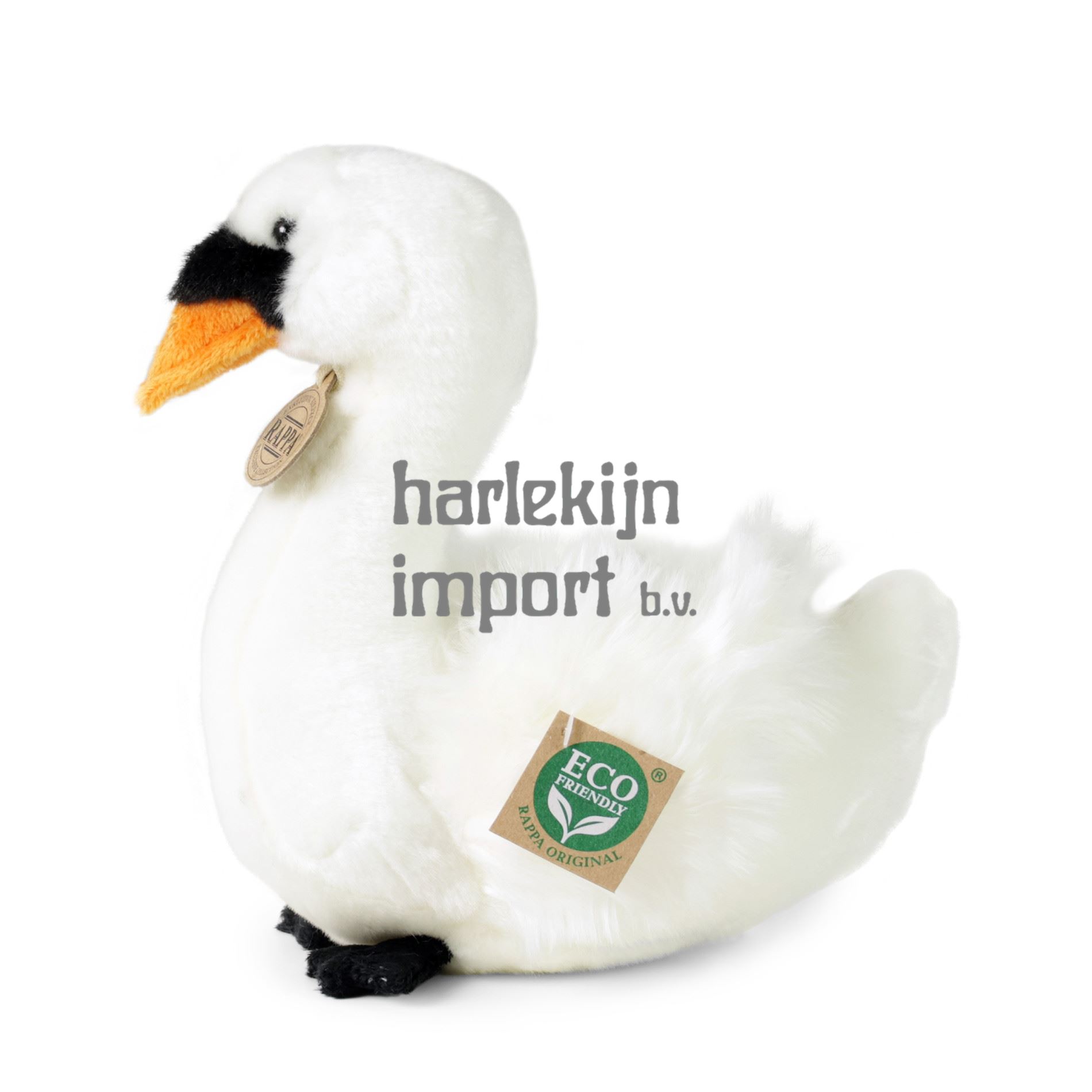 Schattige pluche zwaan in maat 23 cm is gemaakt van exclusief, hoogwaardig pluche. Dit pluche stuk maakt deel uit van de exclusieve RAPPA knuffelcollectie. Wat betekent ECO-FRIENDLY eigenlijk? De vulling van pluche speelgoed is gemaakt van gerecyclede PET-flessen. Dit materiaal is volkomen veilig, niet te onderscheiden van de standaard vulling en volledig gecertificeerd voor de veiligheid van de allerkleinsten. We hebben besloten om het groene pad zo milieuvriendelijk mogelijk te volgen - het ECO-FRIENDLY pad.