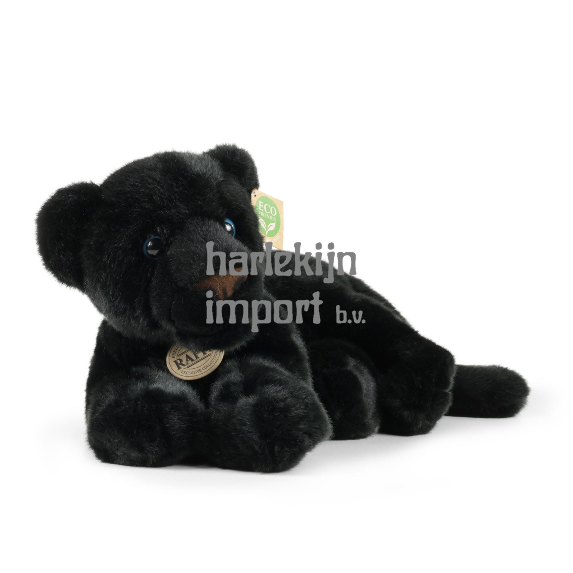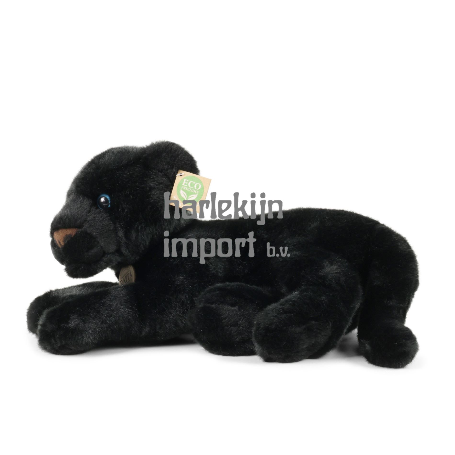 De 40 cm lange pluche zwarte panter is met de hand genaaid van hoogwaardig, zacht pluche, waardoor het er levendig uitziet. Voor zijn schattige uitdrukking wordt hij op elk moment een welkome metgezel. Het maakt deel uit van de exclusieve collectie knuffels RAPPA. We hebben besloten om de groene weg te gaan, die zo milieuvriendelijk mogelijk is - de ECO-VRIENDELIJKE weg. Wat betekent ECO-FRIENDLY eigenlijk? De vulling van de knuffel is gemaakt van gerecyclede PET-flessen. Dit materiaal is volkomen veilig, niet te onderscheiden van de standaard vulling en volledig gecertificeerd voor de veiligheid van zelfs de allerkleinsten.
