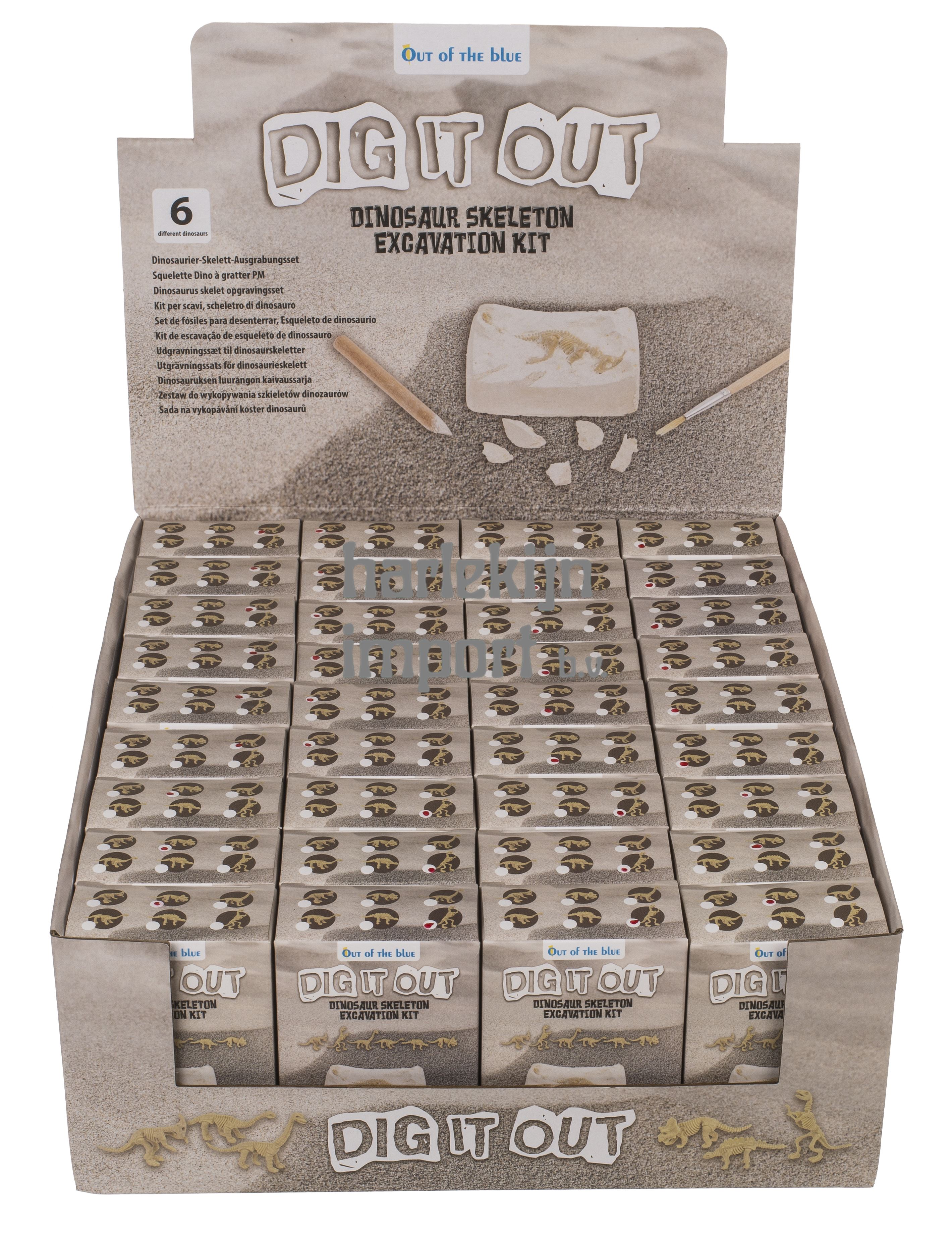 Opgravingsset, dinosaurusskelet, ca. 4 x 8 cm, 6 assorti, 36 stuks.
