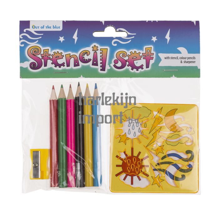 Dsp Schoolset, 3 stuks. Sjabloon 4 verschillende, kleurpotloden & puntenslijper. 24 stuks in display. |