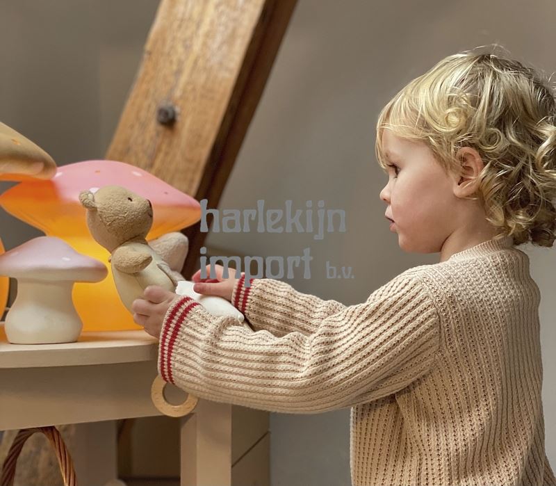 Marcel is een heel zachte beer, gemaakt van bio-katoen en met een vulling van gerecycleerd polyester.