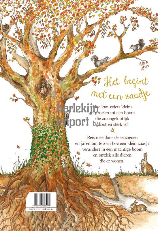 Reis mee door de seizoenen en de jaren en zie hoe een zaadje eerst verandert in een klein boompje, en uiteindelijk in een machtige boom met takken en wortels die de hele pagina vullen.