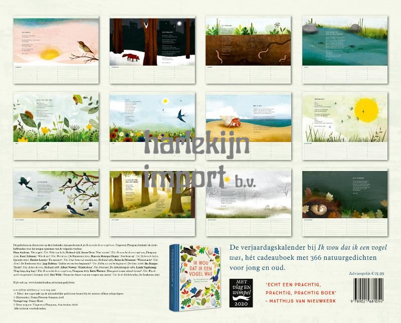 Voor iedereen die de prachtige illustraties die Frann Preston-Gannon voor de poëziebundel Ik wou dat ik een vogel was maakte aan de muur wil hangen, is er deze verjaardagskalender! Met de twaalf mooiste platen uit het boek en één gedicht per maand.