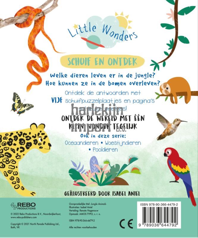 Welke dieren leven er in de jungle? Hoe kunnen ze in de bomen overleven? Ontdek de antwoorden met de VIJF schuifpuzzelplaatjes en pagina's vol leuke weetjes!