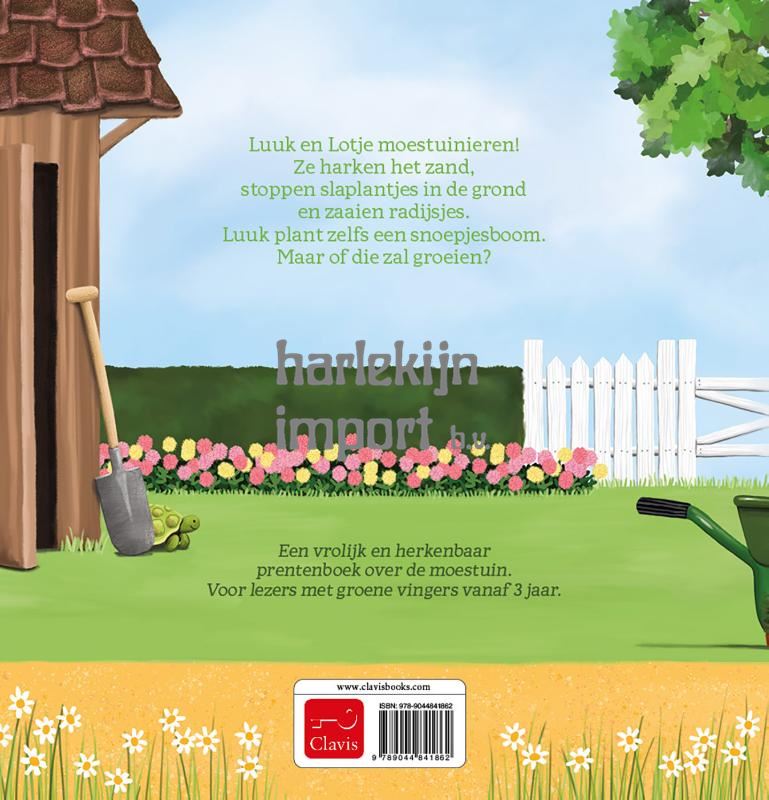 Een vrolijk en herkenbaar prentenboek over de moestuin. Voor lezers met groene vingers vanaf 3 jaar. Luuk en Lotje moestuinieren! Ze harken het zand, stoppen slaplantjes in de grond en zaaien radijsjes. Luuk plant zelfs een snoepjesboom. Maar of die zal groeien?