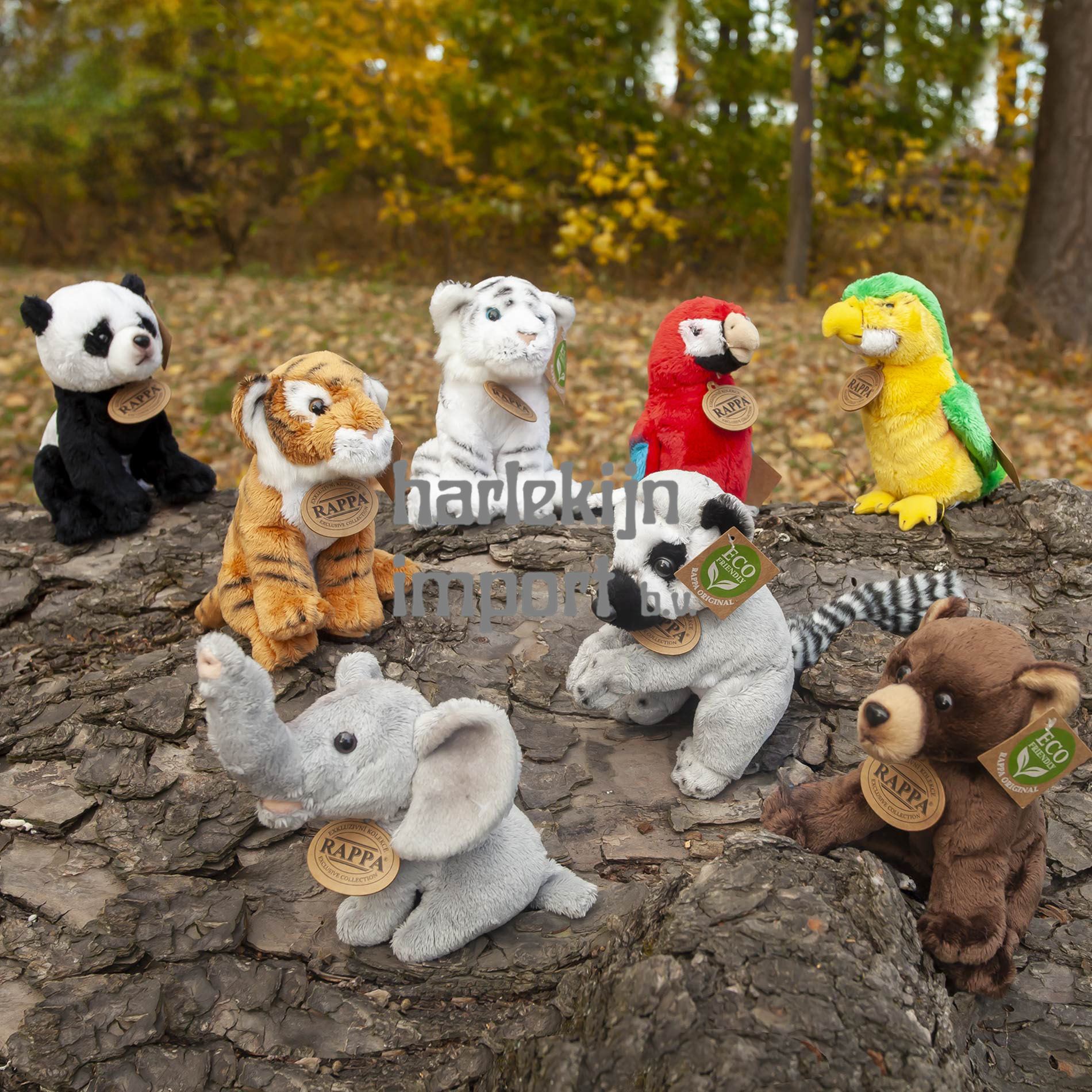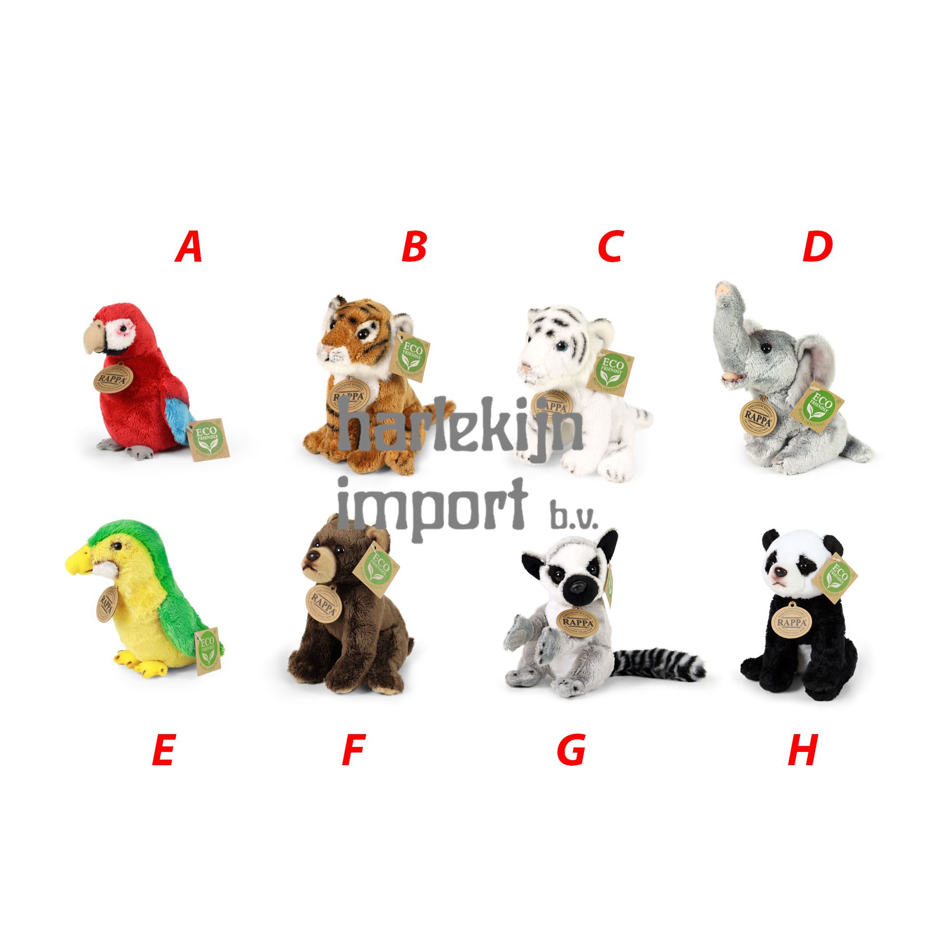 Mix van exotische dieren, onderdeel van een exclusieve collectie knuffels. Wat betekent ECO-FRIENDLY eigenlijk? De vulling van pluche speelgoedvezels is gemaakt van gerecyclede PET-flessen. Dit materiaal is volkomen veilig, niet te onderscheiden van de standaard vulling en volledig gecertificeerd voor de veiligheid van baby's. We hebben besloten om het groene pad zo milieuvriendelijk mogelijk te volgen - het ECO-FRIENDLY pad.