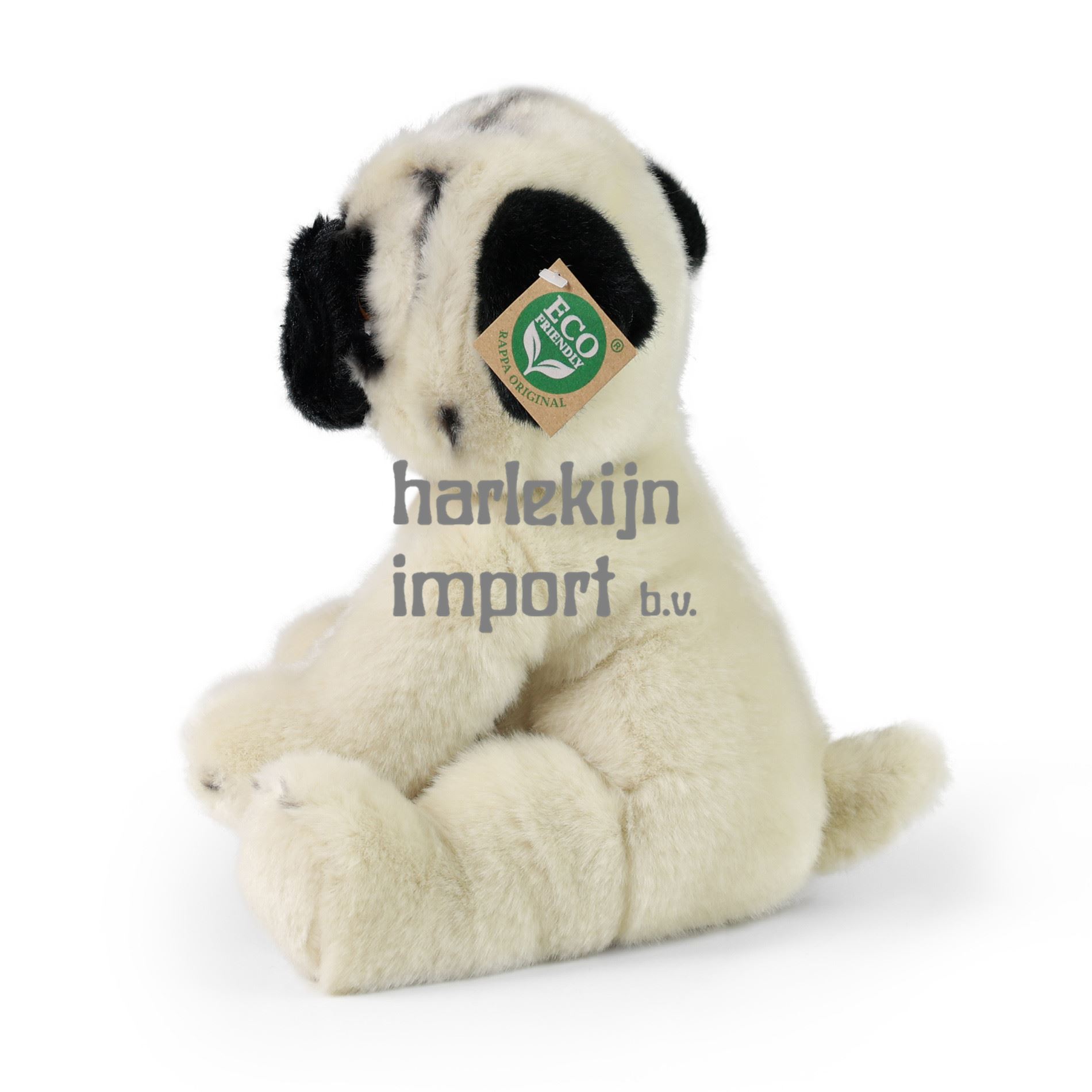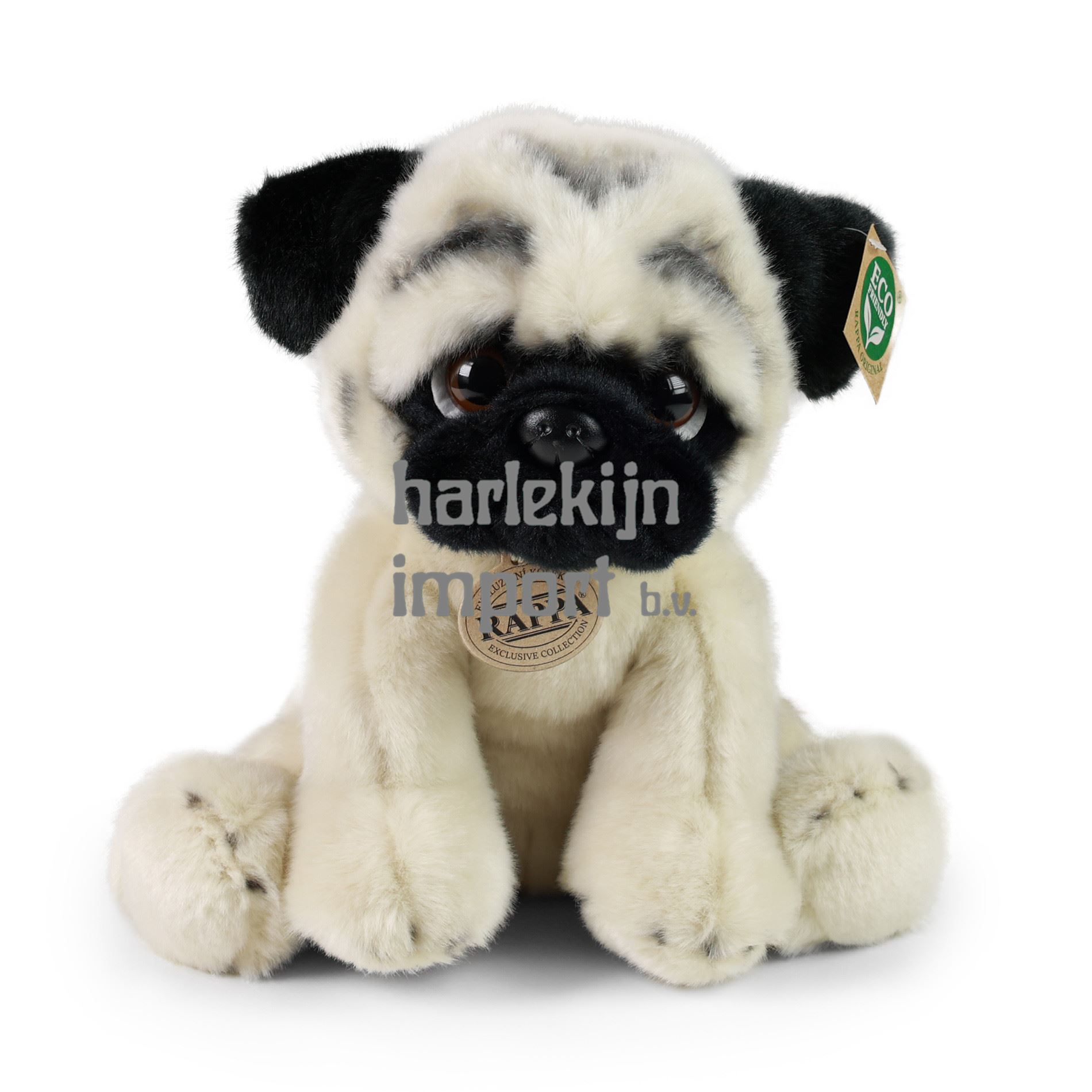 De pluche mopshond is met de hand genaaid van hoogwaardig, zacht pluche en ziet er daardoor levendig uit. Deze hond is 30 cm groot. Door zijn schattigheid wordt het niet alleen een welkome metgezel in elke kinderkamer. Het maakt deel uit van de exclusieve collectie knuffels RAPPA. We hebben besloten om de groene weg te gaan, die zo milieuvriendelijk mogelijk is - de ECO-VRIENDELIJKE weg. Wat betekent ECO-FRIENDLY eigenlijk? De vulling van de knuffel is gemaakt van gerecyclede PET-flessen. Dit materiaal is volkomen veilig, niet te onderscheiden van de standaard vulling en volledig gecertificeerd voor de veiligheid van zelfs de allerkleinsten.