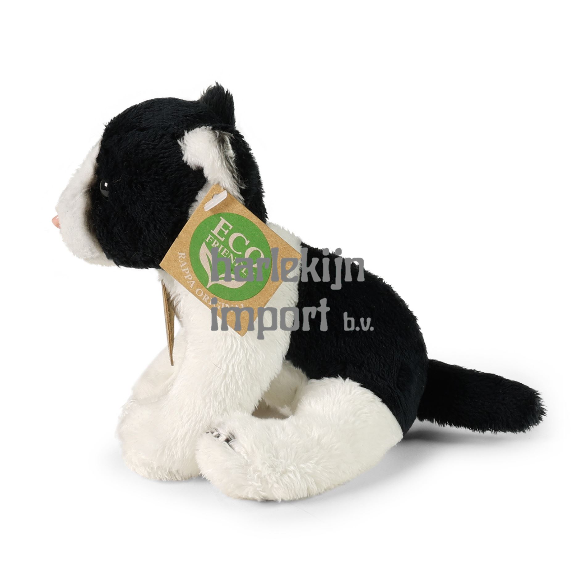 Pluche pluizige zwart-wit kat 14 cm ECO-FRIENDLY |