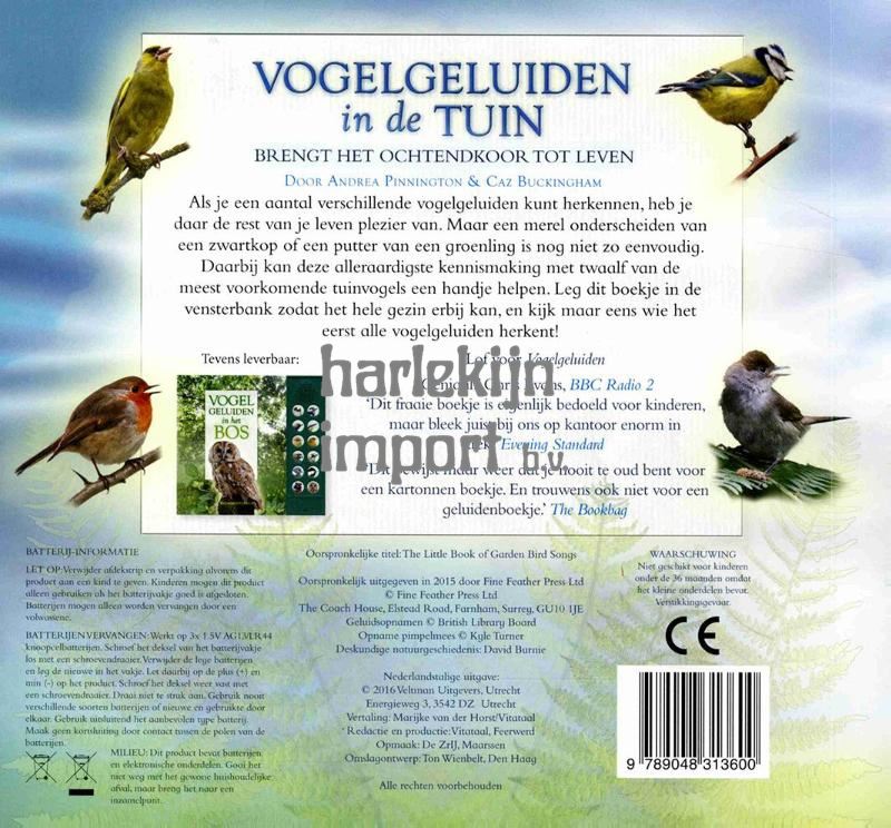 Als je een aantal verschillende vogelgeluiden kunt herkennen, heb je daar de rest van je leven plezier van. Maar een merel onderscheiden van een zwartkop of een putter van een groenling is nog niet zo eenvoudig. Daarbij kan deze alleraardigste kennismaking met twaalf van de meest voorkomende tuinvogels een handje helpen. Leg dit boekje in de vensterbank zodat het hele gezin erbij kan, en kijk maar eens wie het eerst alle vogelgeluiden herkent!