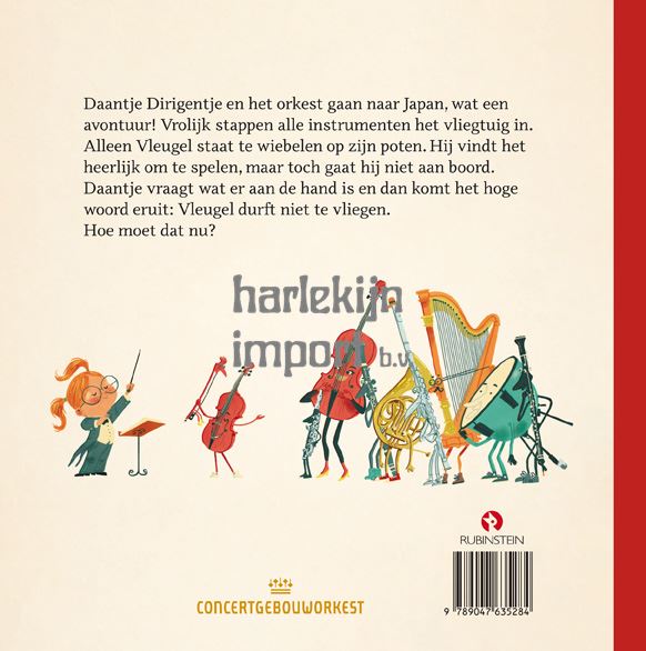 Wat een avontuur: vandaag vertrekt Daantje Dirigentje met het hele orkest naar Japan! Vrolijk stappen alle instrumenten het vliegtuig in. Alleen Vleugel staat te wiebelen op zijn poten. Hij vindt het heerlijk om te spelen, maar toch gaat hij niet aan boord. Als Daantje vraagt wat er aan de hand is, komt het hoge woord eruit: Vleugel durft niet te vliegen. Aan Daantje de taak om hem toch mee te krijgen, want Vleugel kan echt niet gemist worden.