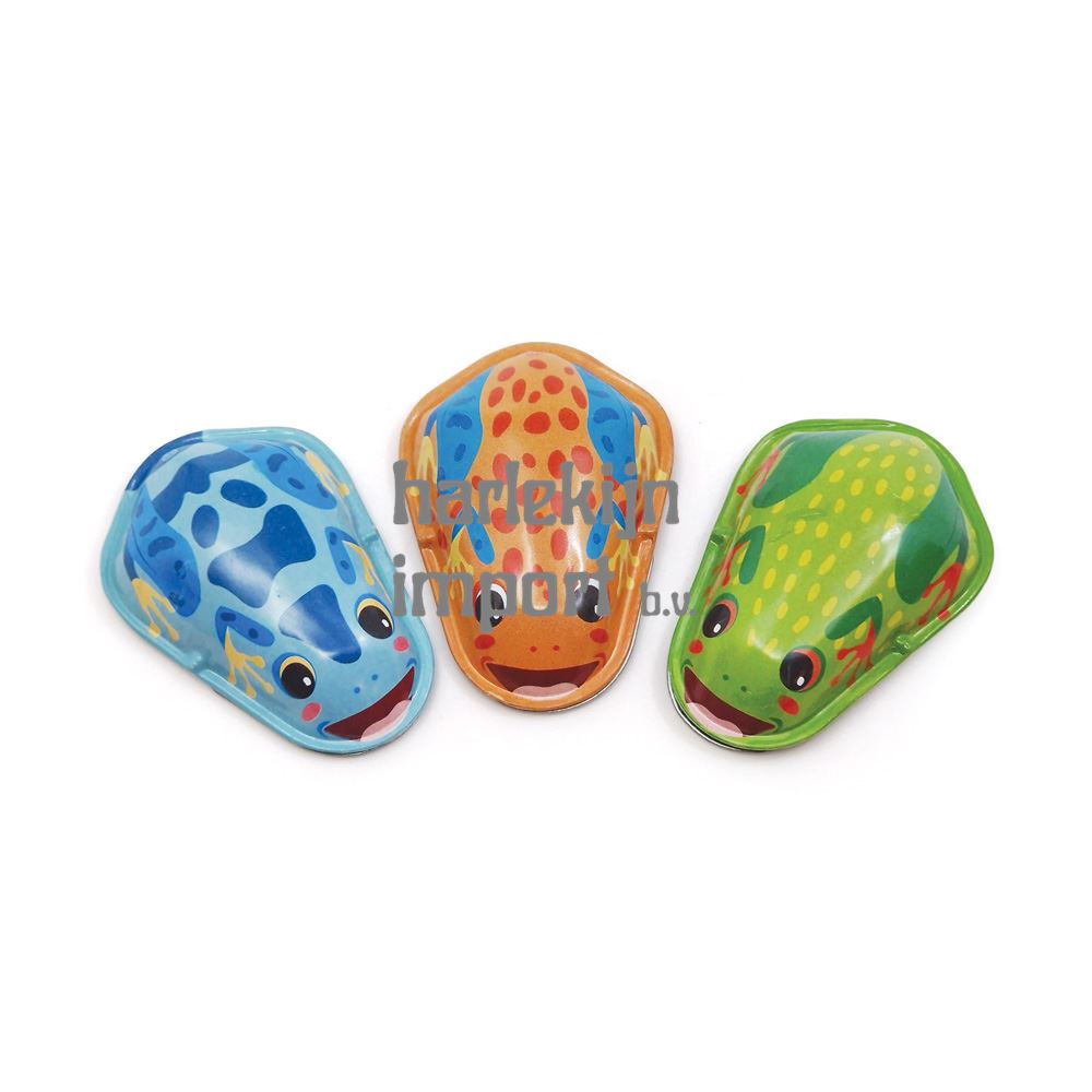 Mini Retro Tin Clickers 'Kikkers' (1 display met 36 stukken, 3 ontwerpen)