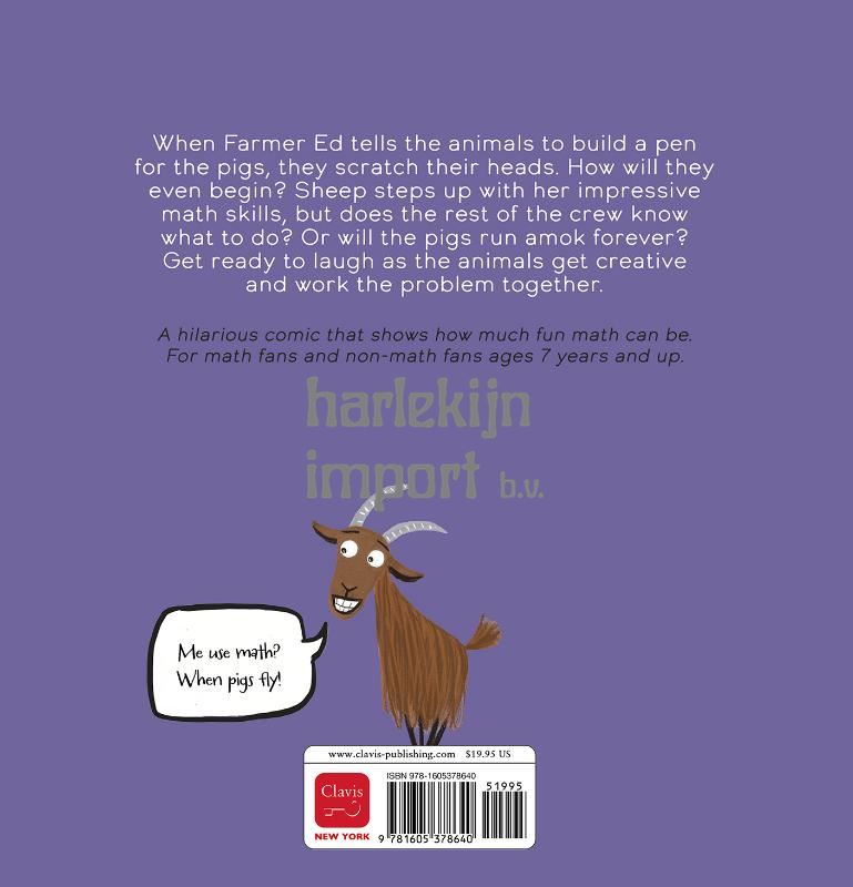 When Farmer Ed tells the animals to build a pen for the pigs, they scratch their heads. How will they even begin? Sheep steps up with his impressive math skills, but does the rest of the crew know what to do? Or will the pigs run amok forever? Get ready to laugh as the animals get creative and work the problem together. A hilarious comic that shows how much fun math can be. For math fans and non-math fans, ages 7 years and up.