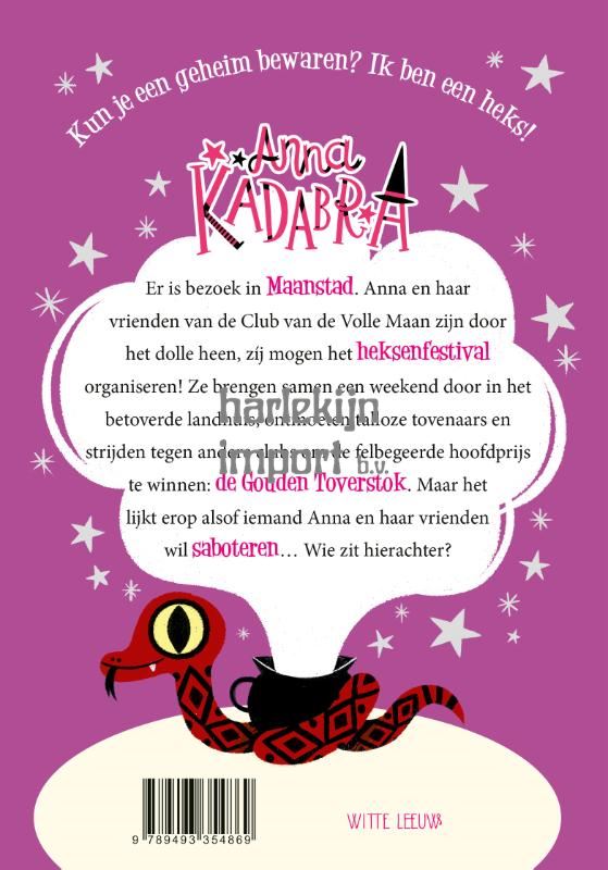 In Anna Kadabra – Het heksenfestival, het vierde deel in de populaire serie over de jonge heks Anna Kadabra, zijn Anna en haar vrienden van de Club van de Volle Maan door het dolle heen. Zíj mogen dit keer het grote heksenfestival organiseren! Ze brengen samen een weekend door in het betoverde landhuis, ontmoeten talloze tovenaars… en strijden tegen andere clubs om de felbegeerde hoofdprijs te winnen: de Gouden Toverstok! Deze vrolijke serie zit vol magie, humor, vriendschap en avontuur – perfect voor beginnende lezers vanaf 7 jaar. Met korte hoofdstukken en kleurrijke illustraties!