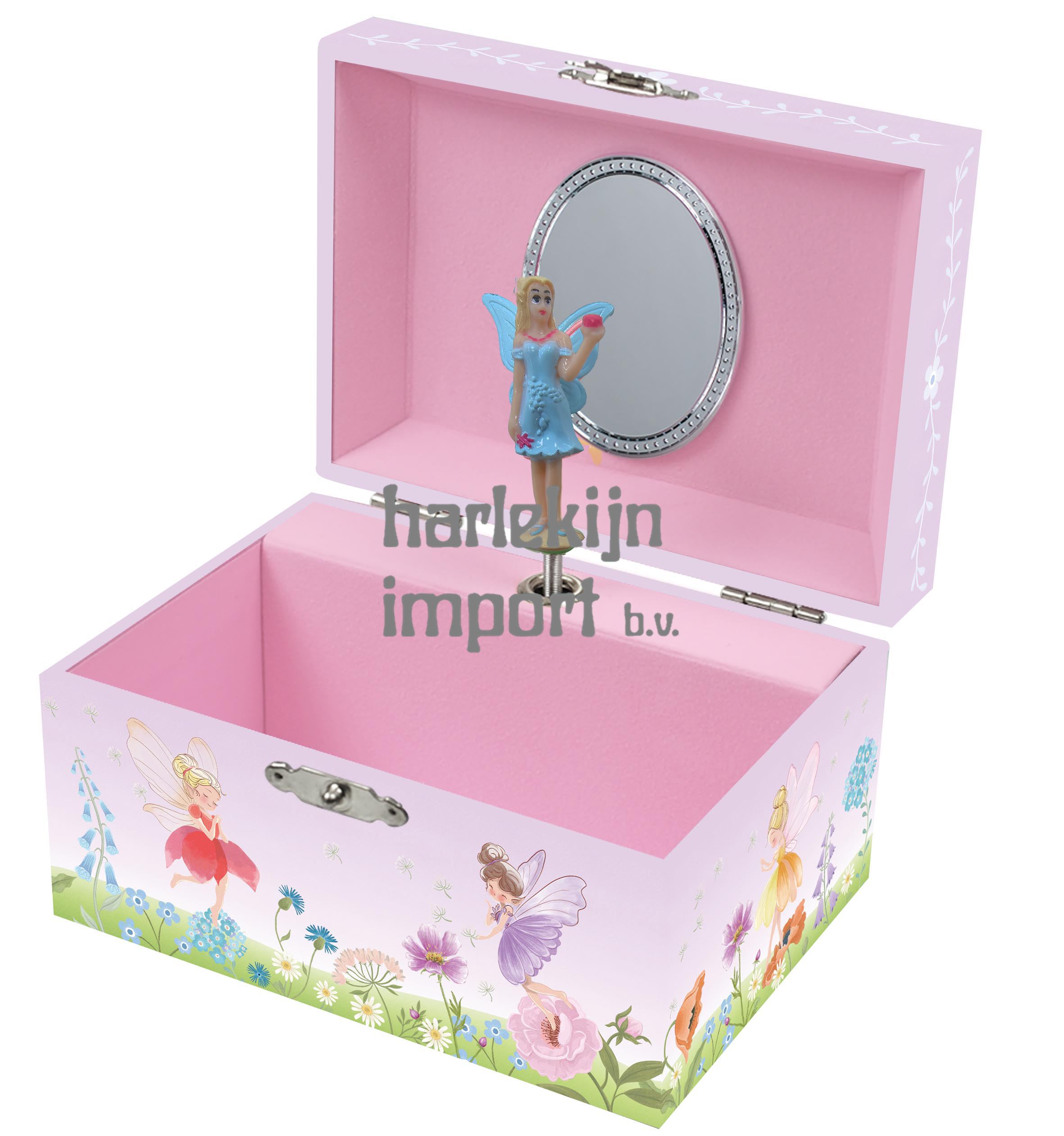 Juwelendoos - muziekdoos: Elfjes met bloemen. Figuur in doosje: Elfje blauw. Melodie: Twinkle Twinkle. 3+ |