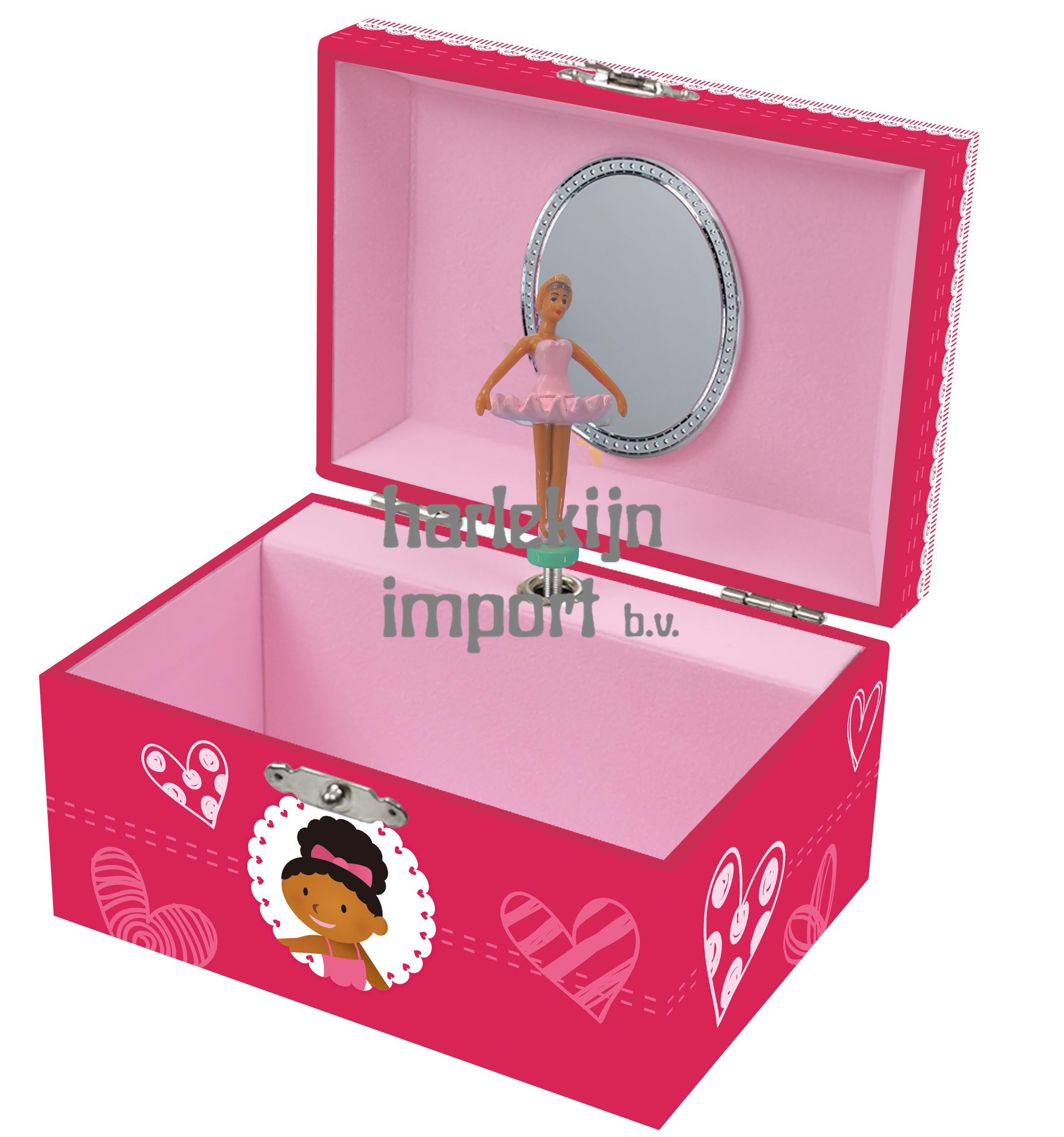 Juwelendoos - muziekdoos: Meisje met hartjes. Figuur in doosje: Ballerina roze. Melodie: Eine kleine Nachtmusic. 3+ |