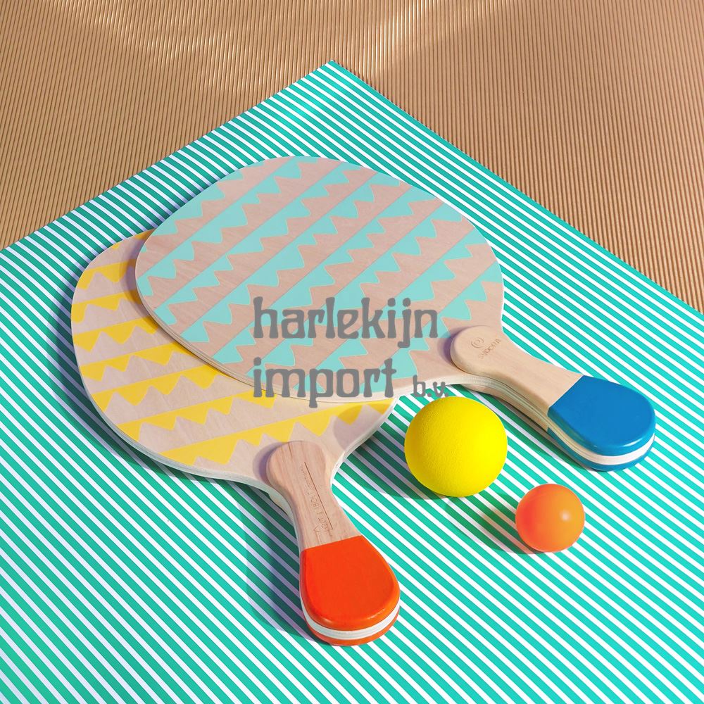 Spring op, sla en speel in de zon met onze levendige Wooden Rackets Set!