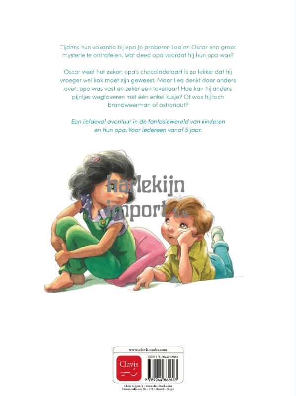 Tijdens hun vakantie bij opa Jo proberen Lea en Oscar een groot mysterie te ontrafelen. Wat deed opa voordat hij hun opa was? Oscar weet het zeker: opa’s chocoladetaart is zo lekker dat hij vroeger wel kok moet zijn geweest. Maar Lea denkt daar anders over: opa was vast en zeker een tovenaar! Hoe kan hij anders pijntjes wegtoveren met één enkel kusje? Of was hij toch brandweerman of astronaut? Een liefdevol avontuur in de fantasiewereld van kinderen en hun opa. Voor iedereen vanaf 5 jaar.