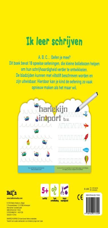 Een nieuwe reeks vol speelse oefeningen die kinderen helpen om hun schrijf-en rekenvaardigheden te ontwikkelen. De bladzijden kunnen met viltstift beschreven worden en zijn uitwisbaar. Hierdoor kan je kind de oefening zo vaak opnieuw maken als het maar wil.