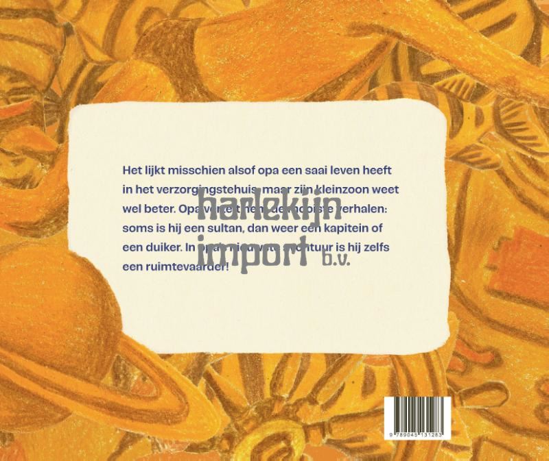 Het lijkt misschien alsof opa een saai leven heeft in het verzorgingstehuis, maar aan zijn kleinzoon vertelt hij de mooiste verhalen – soms is hij een sultan, dan weer een kapitein of een duiker. Als opa steeds vaker in bed blijft, en zelfs zijn ogen niet meer opendoet, wordt iedereen verdrietig. Maar dat is nergens voor nodig, want juist nu is opa op een extra bijzonder avontuur! Een troostend prentenboek over omgaan met verlies en de kracht van fantasie. Met kleurrijke illustraties van drievoudig Zilveren Penseel-winnaar Hedy Tjin.