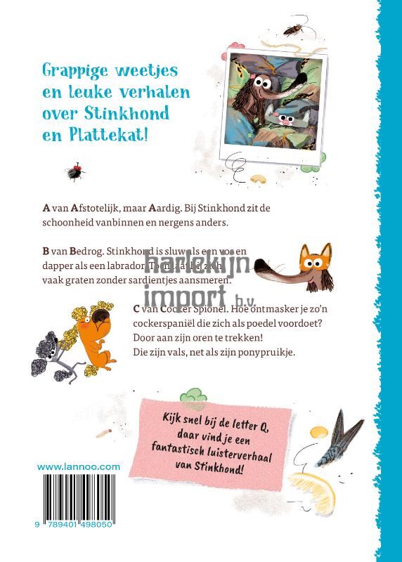 Leer de wereld van Stinkhond en Plattekat kennen van A tot Z. Met verrassende woorden en verklaringen bij elke letter en vooral heel veel humor! A van Afstotelijk, maar aardig. Bij Stinkhond zit de schoonheid vanbinnen en nergens anders. B van Bedrog. Hoewel Stinkhond sluw is als een vos en dapper als een labrador, is hij vaak het slachtoffer van allerlei soorten bedrog. Meer dan eens laat hij zich graten zonder sardientjes aansmeren. C van Cockerspionel. Hoe ontmasker je zo'n cockerspaniƫl die zich als poedel voordoet? Door aan zijn oren te trekken! Die zijn vals, net als zijn ponypruikje.