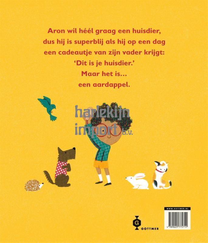 <p>'Aron en Aardappel' is een prentenboek over huisdieren, of eigenlijk over geen huisdieren mogen omdat je ouders allergisch zijn. Want wie kent het niet: een kind dat niets liever wil dan een hond (of een kat, konijn, vis, gerbil of wandelende tak), maar de ouders zijn te druk, of allergisch, of het huis is te klein. Aron heeft alle excuses al te vaak gehoord van zijn ouders. <br><br>Op een dag krijgt hij een verrassing van papa: 'Alsjeblieft, een huisdier!' Maar het is... een aardappel. Aron gooit 'm teleurgesteld in een hoek. Maar dat aardappel-huisdier kijkt toch een beetje verdrietig. En een beetje eenzaam. Vooruit dan, Aardappel mag in de speelgoedtrein van Aron zitten en mee buitenspelen. Aron en zijn Aardappel worden onafscheidelijk! Maar als-ie beschimmeld is, gooit mama Aardappel weg. Aron is vreselijk verdrietig. Dan piept er iets groens uit de grond. Het scheutje wordt groter en groter en na een tijdje vindt Aron overal aardappels; genoeg huisdieren voor iedereen!<br><br>'Aron en Aardappel' is een prachtig en warm geïllustreerd prentenboek over een situatie die voor ouders en kinderen herkenbaar is en over een onverwachte vriendschap en eindeloze fantasie!</p>