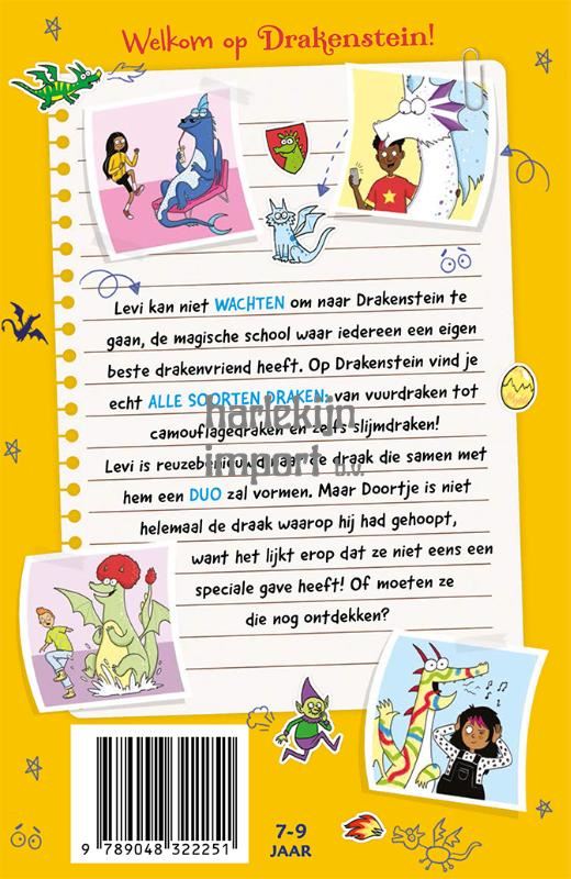 WELKOM OP DRAKENSTEIN! Levi kan niet WACHTEN om naar Drakenstein te gaan, de magische school waar iedereen een eigen beste drakenvriend heeft. Op Drakenstein vind je echt ALLE SOORTEN DRAKEN: van vuurdraken tot camouflagedraken en zelfs slijmdraken! Levi is reuze benieuwd naar de draak die samen met hem een DUO zal vormen. Maar Doortje is niet helemaal de draak waarop hij had gehoopt, want het lijkt erop dat ze niet eens een speciale gave heeft! Of moeten ze die nog ontdekken?