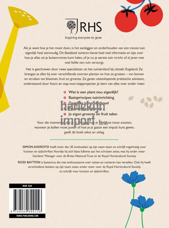 RHS Basisboek tuinieren - geschreven door deskundige tuiniers - leert je verschillende plantensoorten kennen en vertelt je hoe ze groeien, van bomen en struiken tot bloemen, fruit en groenten, van vijvers tot compost. Praktisch advies, voorzien van inspirerende foto's, duidelijke illustraties en stapsgewijze projecten. Van de basisprincipes en dagelijkse tuinverzorging tot het oplossen van problemen en het kweken van je eigen eten.