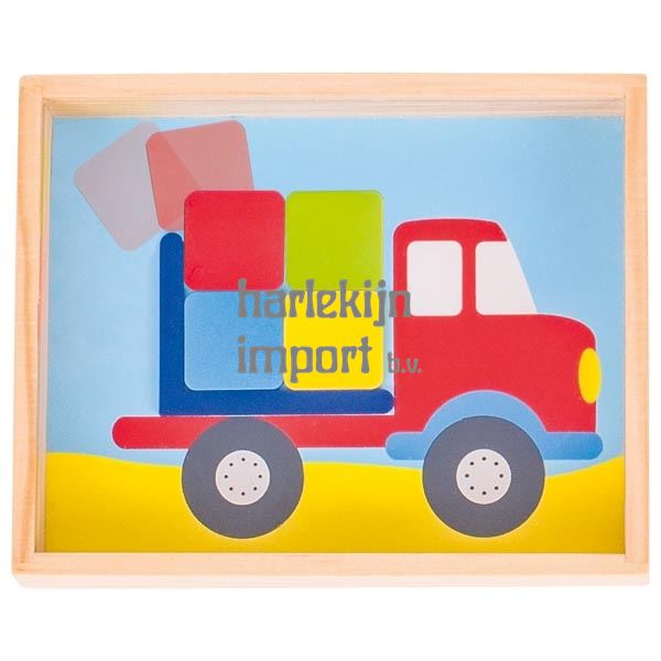 Behendigheidsspel, olifant en vrachtwagen. 12,5x10x2,5 cm. 5+