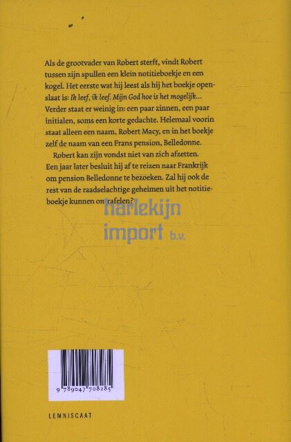 Als de grootvader van Robert sterft, vindt Robert tussen zijn spullen een klein notitieboekje en een kogel. Het eerste dat hij leest als hij het boekje openslaat is: 'Ik leef, ik leef. Mijn God hoe is het mogelijk...' Verder staat er weinig in: een paar zinnen, een paar initialen, soms een korte gedachte. Helemaal voorin staat alleen een naam, 'Robert Macy', en in het boekje zelf de naam van een Frans pension, 'Belledonne'.