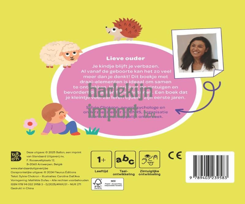 Een leuk kartonboek om al spelend te leren. Draai aan de tekeningen en leer verschillende tegenstellingen kennen: omhoog en omlaag, open en dicht, op en onder ...