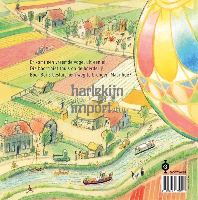 In ‘Boer Boris en de luchtballon’ van topduo Ted van Lieshout en Philip Hopman maakt Boer Boris zijn meest spectaculaire reis tot nu toe. De prachtige prenten van over de hele wereld zijn een kleurrijk feestje en zoals altijd een vrolijk voorleesverhaal op rijm, boordevol humor en goed voor urenlang lees- en kijkplezier. Op het erf ligt een heel eenzaam ei. Boer Boris neemt het mee naar binnen, zodat het veilig kan uitkomen. En dat doet het! Maar… dat is geen kippenkuiken, het is een pinguïn! Het is hier veel te warm voor een pinguïnkuiken, hij moet zo snel mogelijk naar huis. Maar hoe? Naar de Zuidpool gaan geen treinen of bussen. Gelukkig weet Boer Boris altijd raad en met de luchtballon brengen ze het kuiken weer thuis. Maar eerst kijken ze onderweg hun ogen uit.