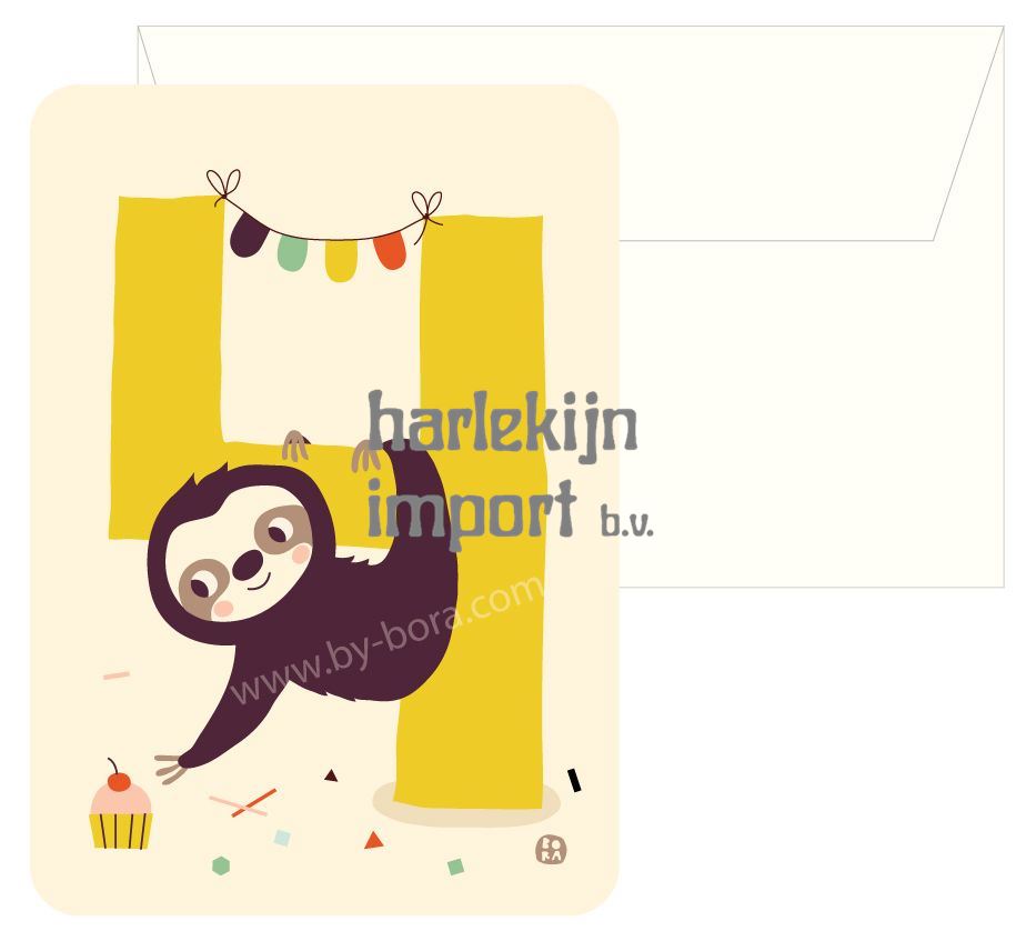 Bora Verjaardagskaart+envelop Sloth 4 (5 st.) |