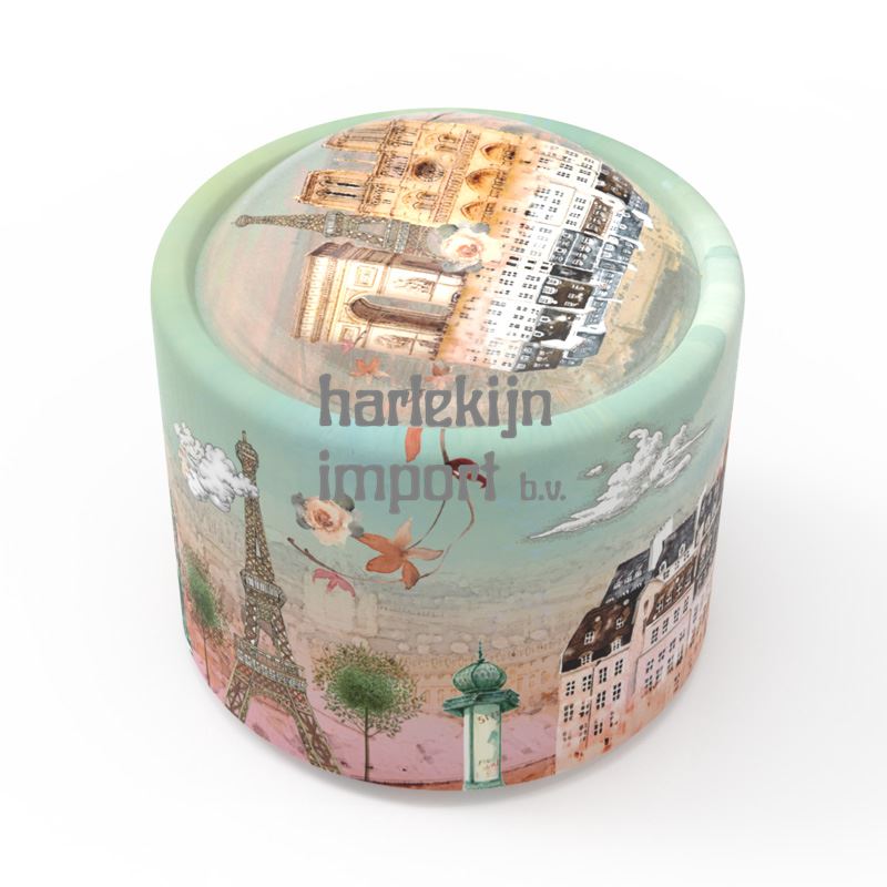 The optical enchantment and the shimmering of their glass half-globes attracts the eye to these surprising, sumptuous-looking paper boxes.