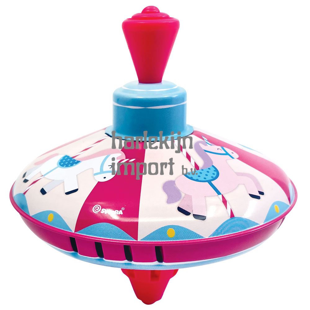 Combineer spelen en leren met onze 'Confetti' tol. Pomp de hendel op en neer om de bovenkant te zien draaien en om hem te horen zoemen, terwijl hij snelheid opbouwt. Het prachtige ontwerp is gebaseerd op blauw met kleine stippen in verschillende maten en kleuren die verwijzen naar confetti! . Een klassiek speeltje gemaakt om lang mee te gaan!