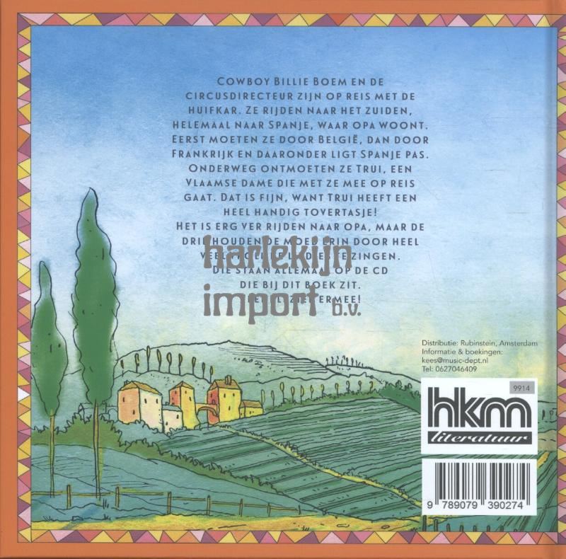 Cowboy Billie Boem en de circusdirecteur zijn p reis met de huifkar. Ze rijden naar het zuiden, helemaal naar Spanje, waar opa woont. Eerst moeten ze door Belgiƫ, dan door Frankrijk en daaronder ligt Spanje pas. Onderweg ontmoeten ze Trui, een Vlaamse dame die met ze mee op reis gaat. Dat is fijn, want Trui heeft een heel handig tovertasje!