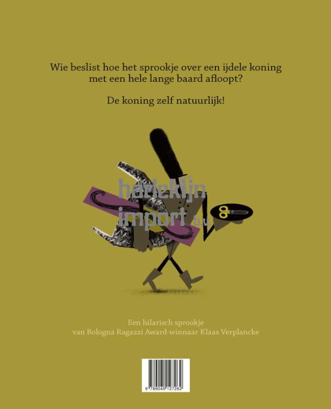 Wat een prachtige baard heeft de koning! Hij brengt zijn dagen door met kammen en in de spiegel kijken. Niemand anders mag een baard laten groeien, daar staat de doodstraf op. Maar terwijl alle mensen in het land zich dagelijks scheren, groeit de baard van de koning de wereld rond tot hij op een dag door de achterdeur van het paleis naar binnen kronkelt. ‘Van wie is die baard?’ roept de woedende koning. ‘Hak de eigenaar aan mootjes!’