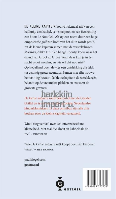 Een van de meest geliefde kinderboeken uit de Nederlandse jeugdliteratuur van meesterverteller Paul Biegel, in een prachtige, geïllustreerde omnibus. De kleine kapitein ‘De kleine kapitein’ is een van Biegels meest geliefde boeken. Carl Hollander voorzag deze gevierde klassieker van de iconische, vrolijke maar ook spannende illustraties. De kleine kapitein bouwt helemaal zelf een boot van een badkuip, een kachel, een stoelpoot en een fietsketting. Hij doopt zijn schip de Nooitlek en begint samen met de drie verstekelingen Dikke Druif, Marinka en Bange Toontje aan een lange, gevaarlijke reis naar het eiland van Groot en Groei. Daar kun je in één nacht groot worden… Toch? Meesterverteller Paul Biegel is de meesterverteller van de Lage Landen, een van de meest geliefde stemmen in de Nederlandse jeugdliteratuur. Voor zijn werk kon hij onder andere twee Gouden Griffels en vier Zilveren Griffels in ontvangst nemen. Ook voor ‘De kleine kapitein’ ontving hij een Gouden Griffel. Paul Biegel is de auteur van meer dan 60 boeken.