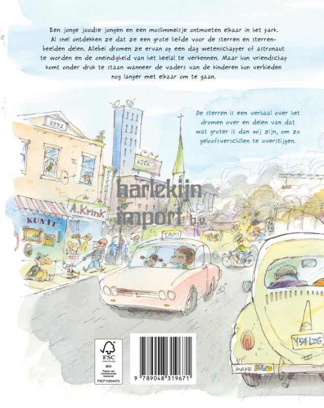 Een Joodse jongen en een moslimmeisje ontmoeten elkaar op straat. Al snel ontdekken ze dat ze een grote liefde voor de sterren en sterrenbeelden delen. Allebei dromen ze ervan op een dag wetenschappers of astronauten te worden, en de oneindigheid van het heelal te verkennen. Maar hun vriendschap komt onder druk te staan, wanneer de vaders van de kinderen hen verbieden nog langer met elkaar om te gaan. De sterren is een verhaal over het dromen over en delen van dat wat groter is dan wij zijn, om zo geloofsverschillen te overstijgen. Jacques Goldstyn is een auteur en illustrator uit Montreal. Zijn vader leerde hem tekenen, en hij was niet te stoppen. Hij ging geologie studeren, maar het illustreren bleef lokken. Jacques houdt van rennen, in bomen klimmen en het verzamelen van gekke stenen.