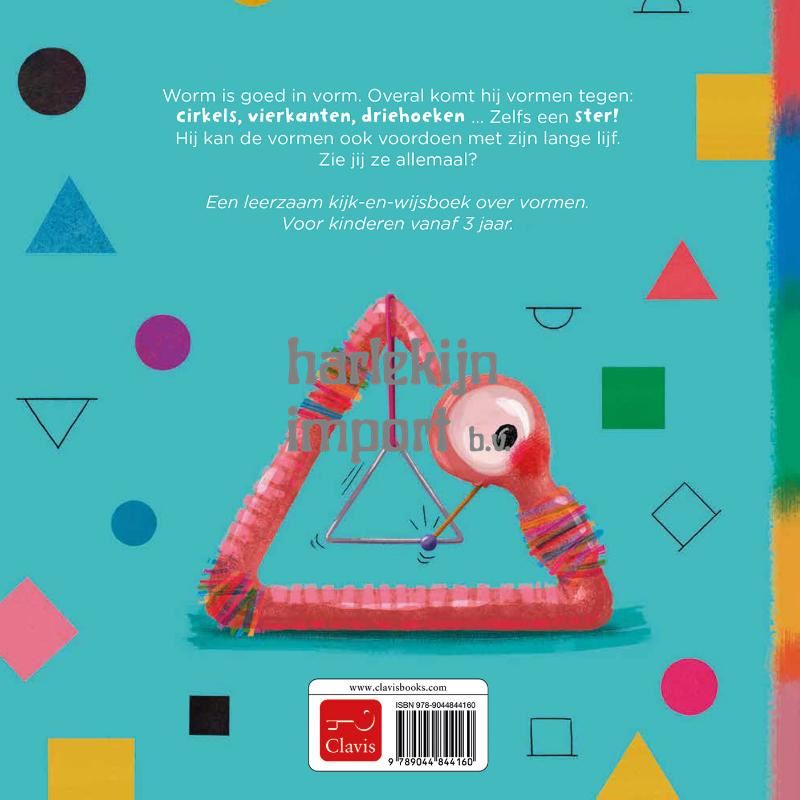 Worm is goed in vorm. Overal komt hij vormen tegen: cirkels, vierkanten, driehoeken... Zelfs een ster! Hij kan de vormen ook voordoen met zijn lange lijf. Zie jij ze allemaal? Een leerzaam kijk-en-wijsboek over vormen. Voor kinderen vanaf 3 jaar.