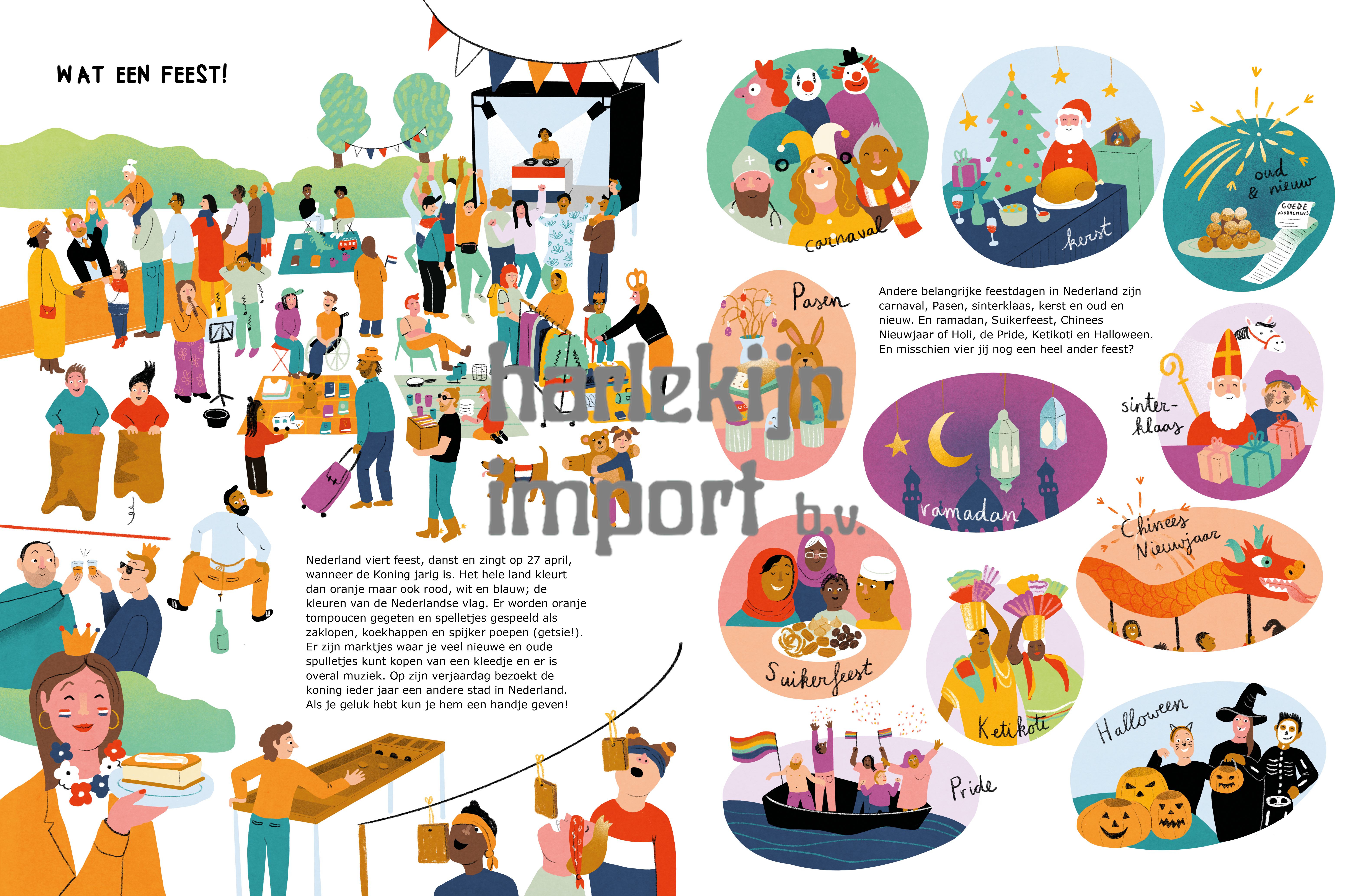 Misschien wel het land waar jij geboren bent of al een poosje woont. Het kan ook zijn dat je hier gezellig op bezoek bent. Blader mee en ontdek de grote diversiteit van dit kleine landje, waar je mag zijn wie je wilt zijn. Van Nederlandse uitvindingen en typische gebruiken tot herkenbare belevenissen. Aan de hand van kleurrijke illustraties en verrassende weetjes stap je in de gezellige wereld van de lage landen. Met dit boek leren kinderen Nederland op een speelse manier kennen. Thema's: Nederland, we zijn hier samen, inclusiviteit, tradities, jezelf zijn. Specificaties: 34 x 26 cm 32 pagina's Gemaakt van kwalitatief dik karton, 335 g/m2 Gedrukt en ingebonden in Europa Voor kids vanaf 4 jaar