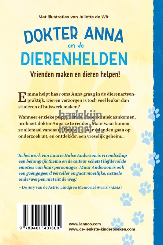 Emma helpt haar oma Anna graag in de dierenartsenpraktijk. Dieren verzorgen is toch veel leuker dan studeren of huiswerk maken? Wanneer er zieke puppy's in de dierenkliniek aankomen, probeert dokter Anna ze te redden. Maar waar komen ze allemaal vandaan? Emma en haar vrienden gaan op onderzoek uit, en ontdekken een vreselijk geheim... 'In het werk van Laurie Halse Anderson is vriendschap een belangrijk thema en de auteur schetst liefdevol de emoties van haar personages. Maar Anderson is ook een geëngageerd verteller en gaat moeilijke, actuele onderwerpen niet uit de weg.' - De jury van de Astrid Lindgren Memorial Award (ALMA) Voor lezers vanaf 9 jaar