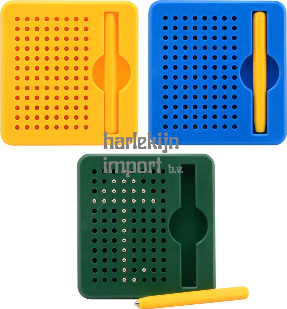 Magnetisch bal tekenbord in display 11 cm, 3 assorti kleuren: Groen, blauw en geel.