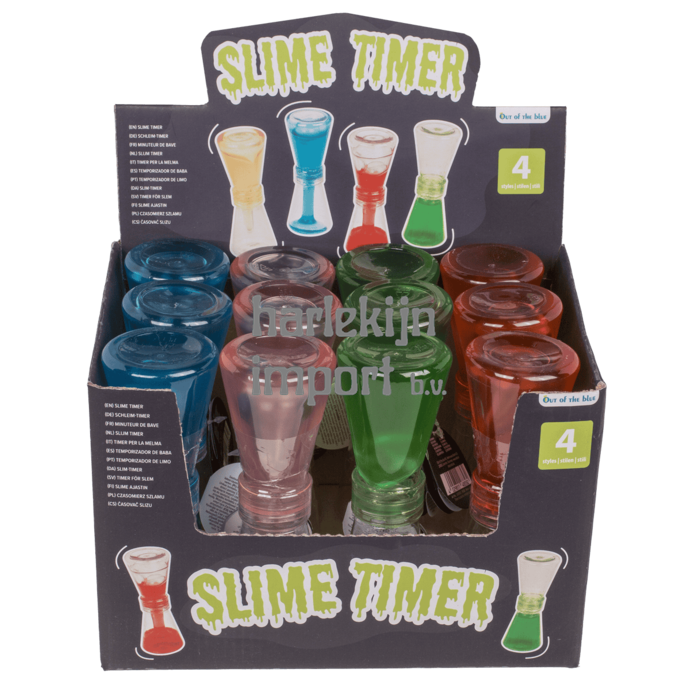Dsp Slijm timer. ca 120 gr. 5,9x16 cm. 4 ass 12 stuks in display.
